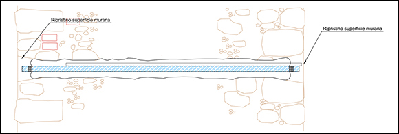 realizzazione di diatoni artificiali ad espansione allo scopo di collegare i diversi paramenti costituenti le murature perimetrali, il cui spessore in alcuni punti si avvicina ai 2 metri, e ridurre la vulnerabilità delle pareti murarie.