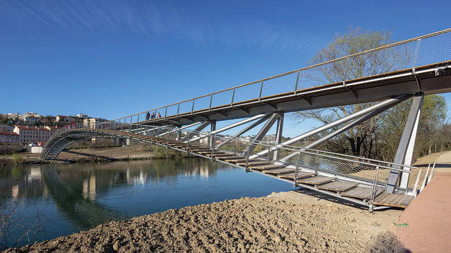 Sul fiume Rodano, a Lione, la “Passerelle de la Paix”, di recente realizzazione congiunge il VI Arrondissement al Parco Saint Clair at Caluire et Cuire, oltre alla celebre Cité Internationale. La passerella ciclopedonale, realizzata in acciaio, attraversa il fiume in un unico arco di 220 m, con una campata principale di 160 m ed un innesto di 60 m sul lato parco. La parte centrale raggiunge gli 8 m in elevazione sopra il fiume. La struttura portante è composta da due archi realizzati con profili tubolari in acciaio, che creano il corrente inferiore, e da travi scatolari metalliche a costituire il corrente superiore.